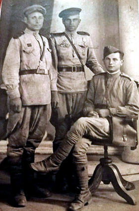 Динека Алексей Викторович (1984 – 2022) Участник специальной военной операции, гвардии майор Родился в с. Мартыновка Петровского района Ставропольского края. Срочную службу проходил в 2006-2007 гг. в 76-й гвардейской десантно-штурмовой дивизии (г. Псков). С 2008 г. служил в 247-м гвардейском десантно-штурмовом полку (г. Ставрополь). В 2016 г. и в 2019 гг. участвовал в военных действиях в Сирии. С первых дней в зоне специальной военной операции. Погиб при выполнении боевых задач 26 февраля 2022 г. у с. Весёлое Шахтёрского района Донецкой Народной Республики. Награждён орденом Мужества (посмертно), медалью ордена «За заслуги перед Отечеством» 2 степени с мечами, медалями «За воинскую доблесть» 1 и 2 степеней, «За отличие в военной службе» 2 степени, «За боевые отличия», «За укрепление боевого содружества», «За участие в миротворческой миссии в Сирийской Арабской Республике», «Участнику военной операции в Сирии», знаком отличия «За заслуги» | ![]() Динеко Алексей Захарович (на фото в центре) (1913 – 1993) Участник Великой Отечественной войны, гвардии младший сержант (прадед А.В. Динеки по отцовской линии) На фронте с 1941 г. Служил наводчиком орудия 232-го гвардейского артиллерийского полка 97-й гвардейской Полтавской Краснознамённой ордена Суворова стрелковой дивизии. Участвовал в Сталинградской битве, воевал на Курской дуге и дошёл до Берлина. Был награждён двумя орденами Отечественной войны 2 степени, медалями «За оборону Сталинграда», «За победу над Германией в Великой Отечественной войне 1941-1945 гг.», знаками отличия артиллериста ![]() Славный Алексей Петрович (1925 – 2013) Участник Великой Отечественной войны, капитан (прадед А.В. Динеки по материнской линии) В составе 75-го запасного стрелкового полка 34-й запасной стрелковой дивизии командир пулемётного взвода А.П. Славный освобождал Западную Украину, Польшу, дошёл до Берлина. Награждён орденами Отечественной войны 2 степени, Красного Знамени, медалями «За победу над Германией в Великой Отечественной войне 1941-1945 гг.», «За отвагу» | ||